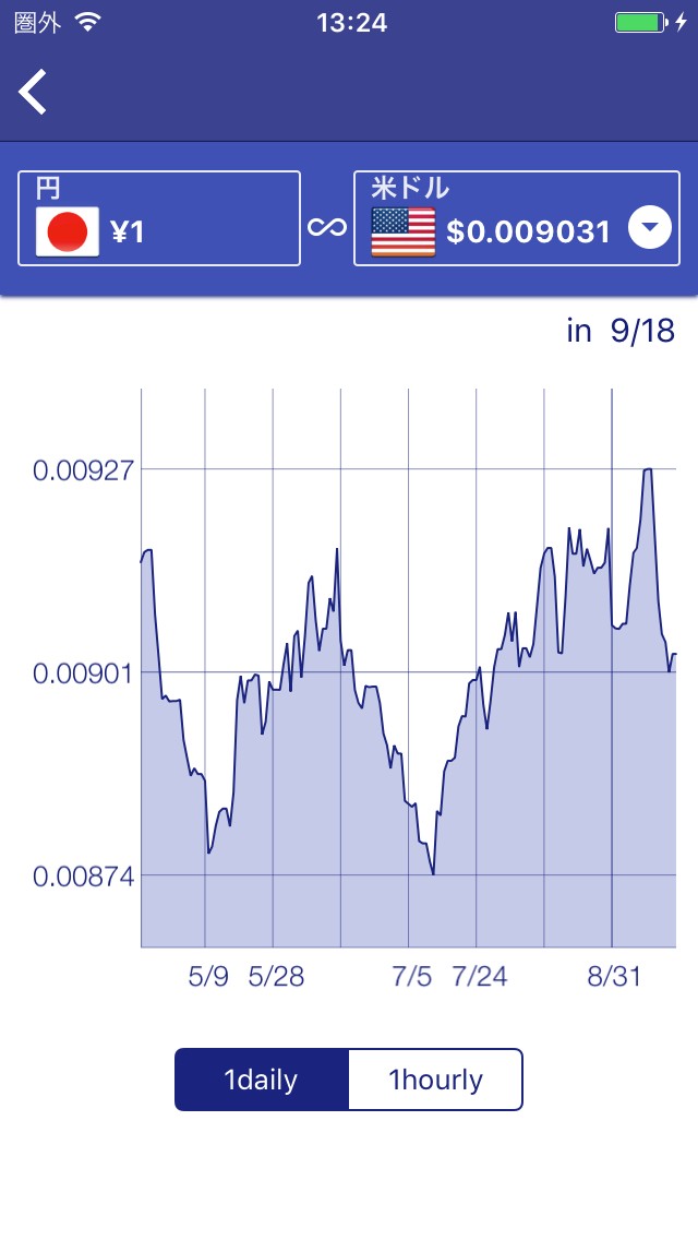 右上のドルをタップすれば通貨選択画面になって他の通貨に変更できます。
