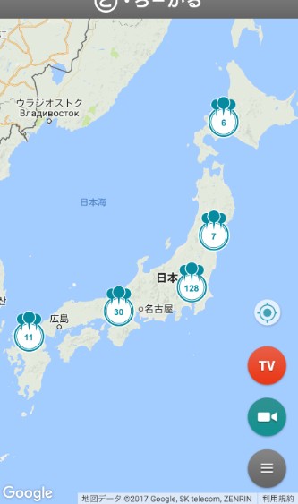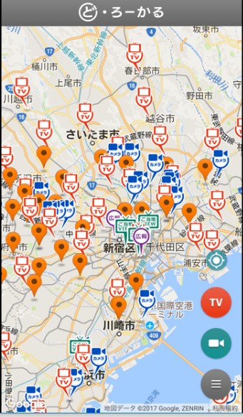 イベントの映像や、ライブカメラ、放送局の位置は地図から選択することができるので、