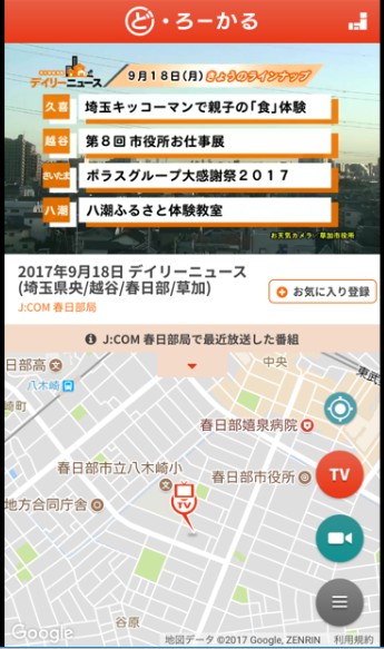 このアプリでは、地域のニュース番組や、定点観測映像などが見られるため、
