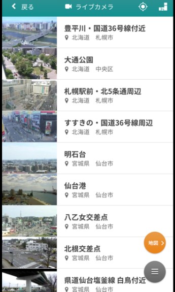 ・ライブカメラ映像をチェックできるので、交通量を確認しやすい。