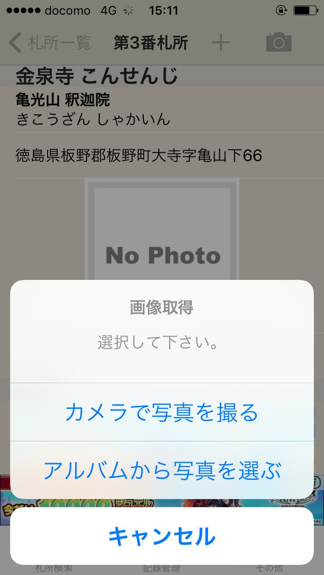 こちらの写真やメモを記入された札所は、自動的に「巡礼札所履歴」にも反映されます。