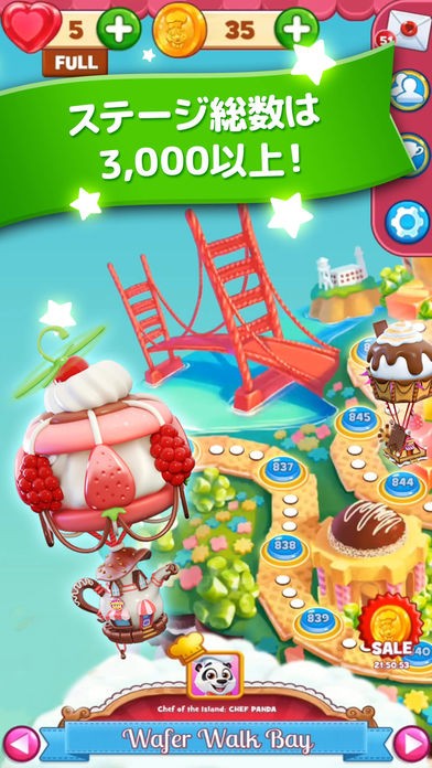 「クッキージャム」はナビゲーターのフレンチなパンダシェフと一緒にミッションをクリアしながらポップでかわいいお菓子の世界を進んでいく、女子にはたまらないでスイートな3マッチパズルゲームです。