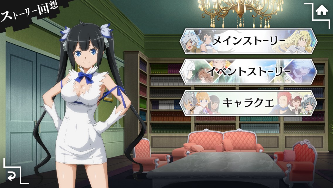 いつでも可能なストーリー回想やキャラ紹介でさらにダンまちを知る!
