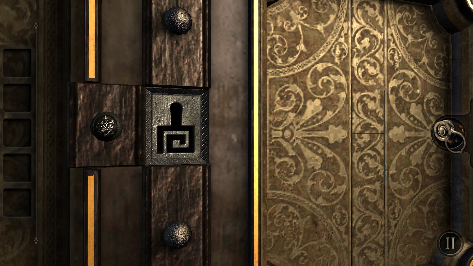 箱のギミックから手にいれた鍵は、タップで拡大することで2つの使い方が出来ます。鍵穴に鍵がはまらないときは、鍵自体を拡大して差込口の向きを変えてから使用してみましょう。