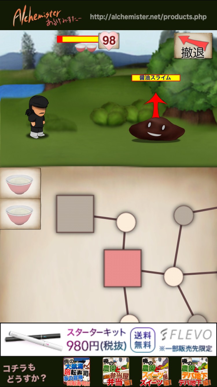 このゲームはクエストをクリアするRPGゲームですが、要素は「狩り(戦い」「ラーメン作成」「店舗拡大」になります。