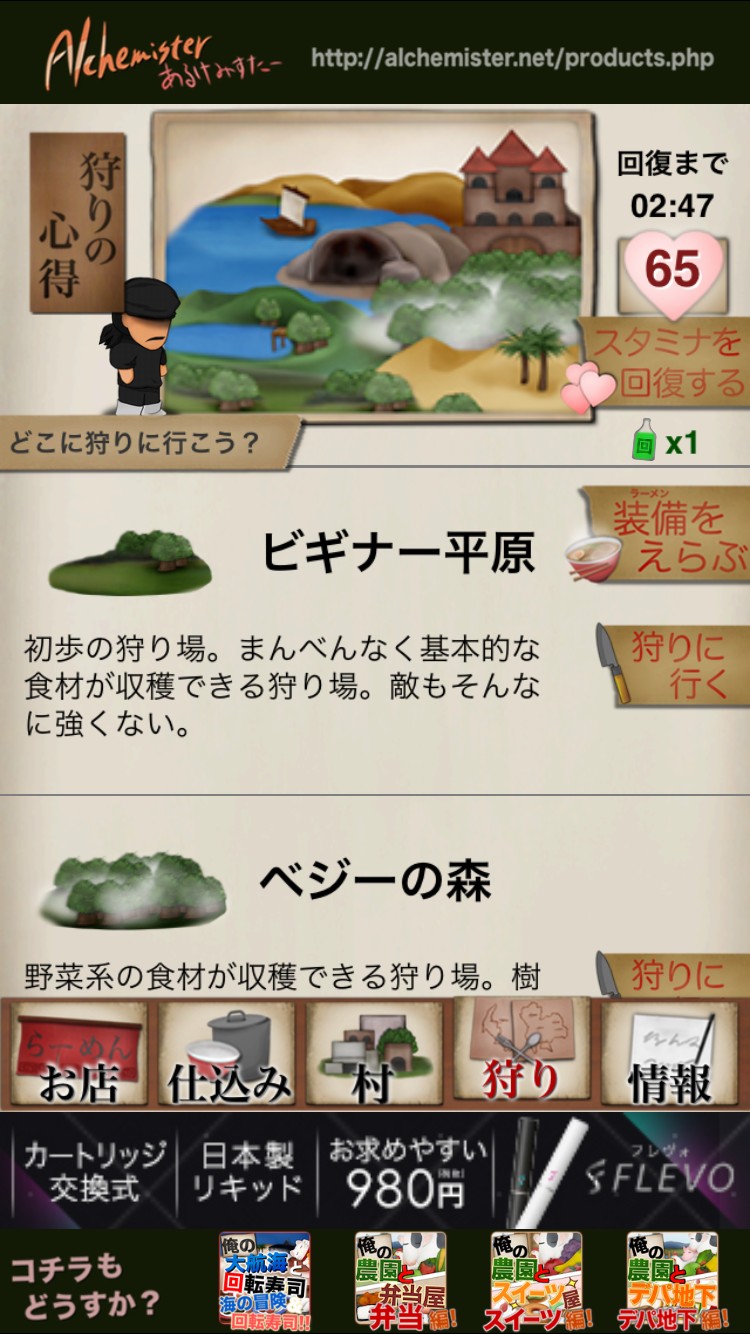 本当に最初は狩ってはラーメンを作り、お店で売りながら狩りに持っていくというパターンが一番効率的な進め方になります。