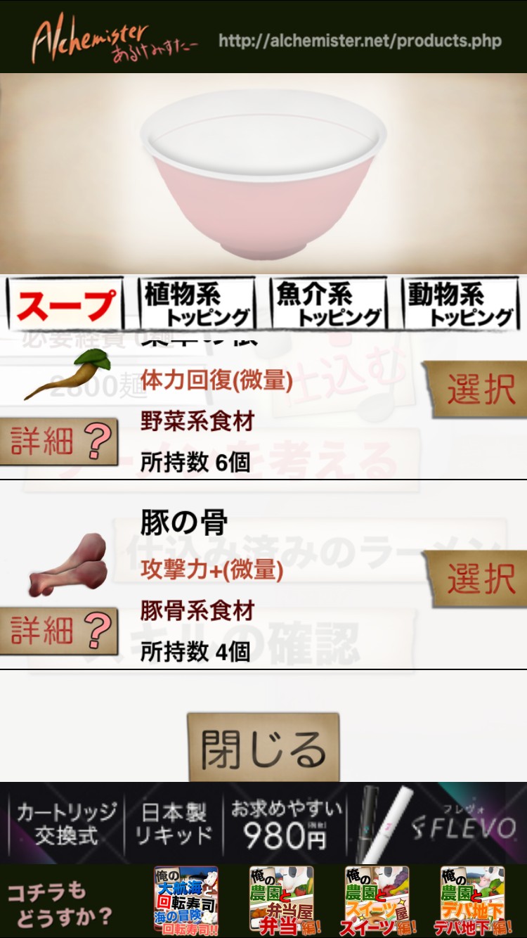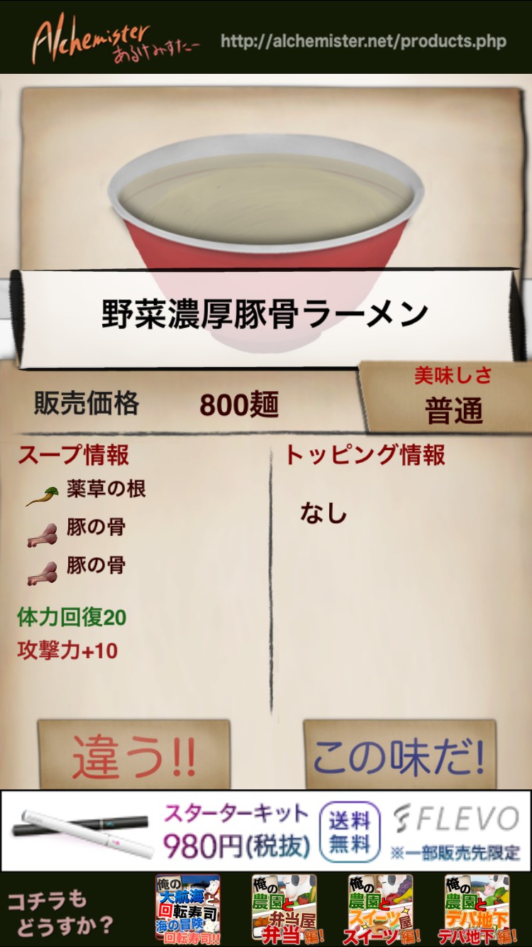 タイトルからして惹きつけられるこのゲームは、ラーメンをとことん作るお手軽RPGです。