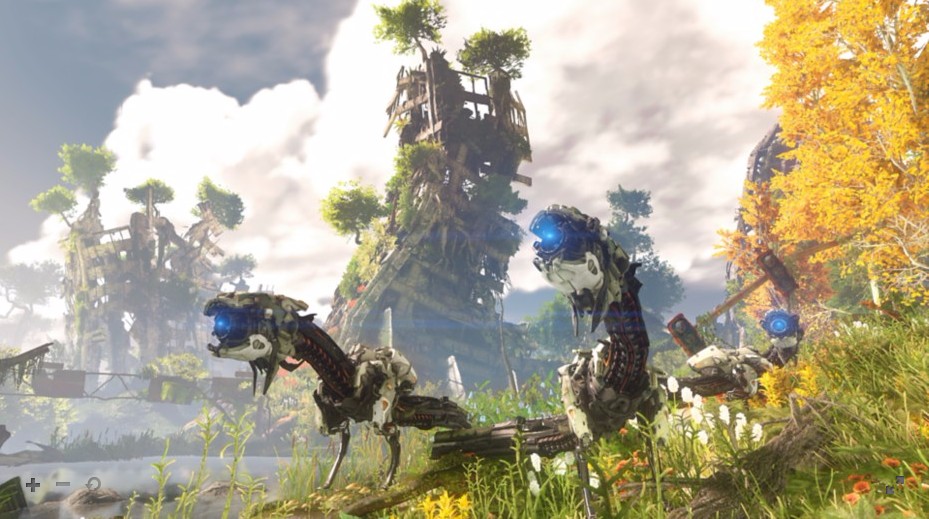 「Horizon Zero Dawn ホライゾンゼロ・ドーン」の世界には、非常にたくさんの機械が生息しています。それぞれが動物を思わせる外見を持ち、まるで生きているような動きを見せることも。