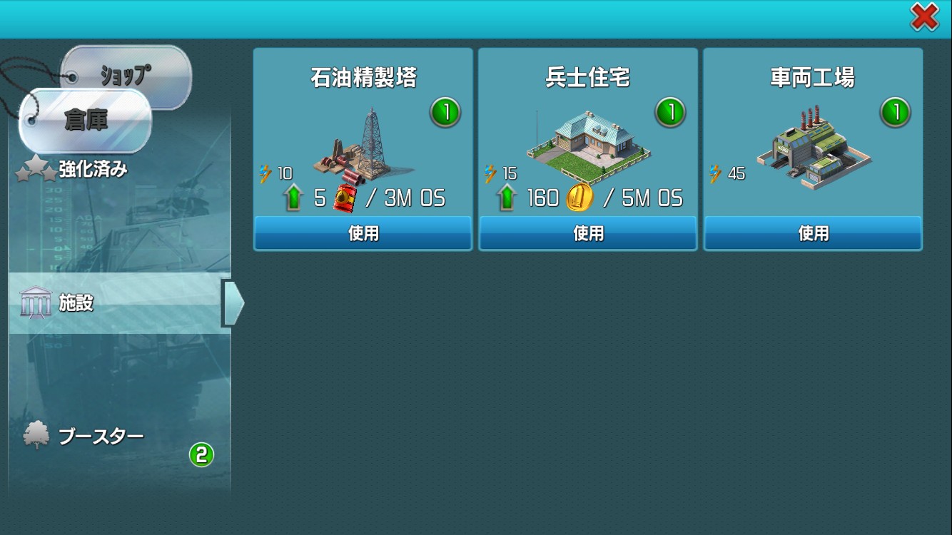 なんといっても避けて通ることができないのが、基地開発です。自軍の基地に油田や食堂などを建設します。闘いに必要な油や開発、軍隊の購入に必要なお金などを基地で回収します。地道な作業ですが、とても重要なので、こまめにログインして基地でできたお金などをタッチで回収しておきましょう。