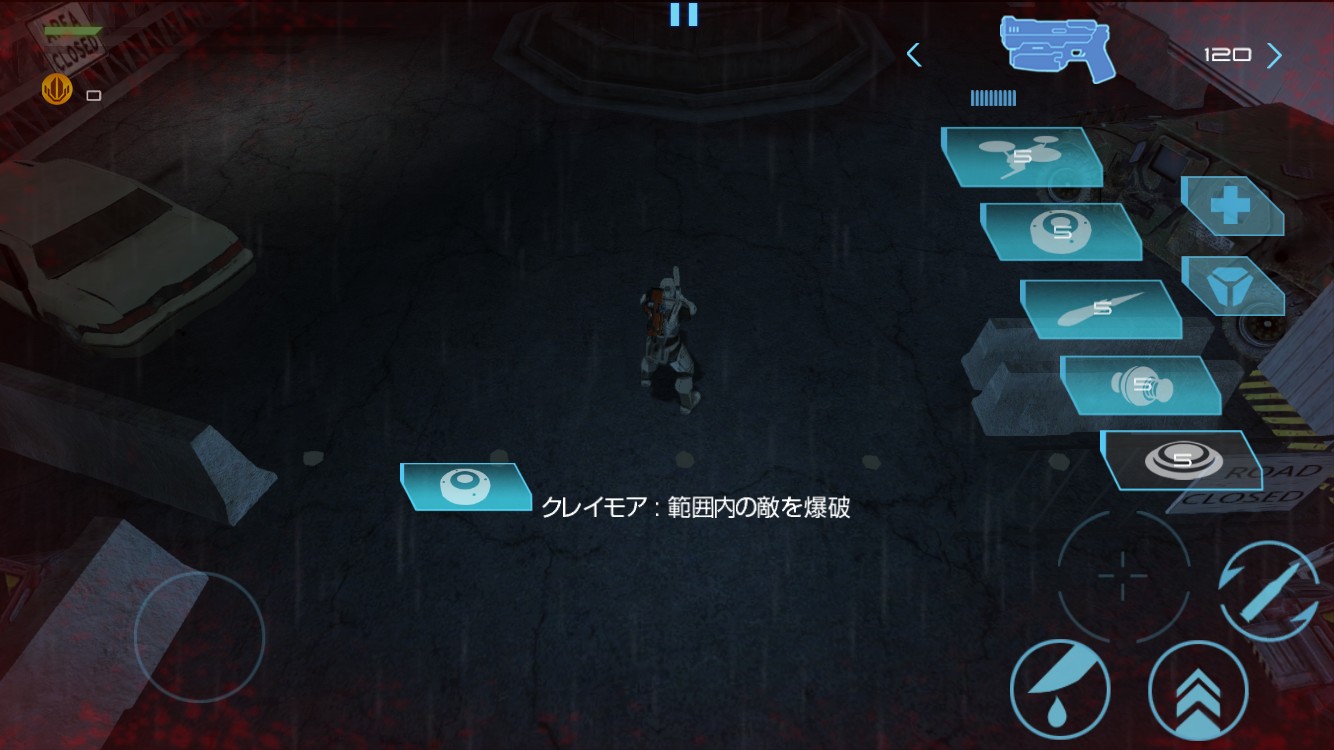 画面の上を指で擦って操作します。ボタンやスティックなどの物理キーがないので、操作には少し慣れが必要です。移動したり、銃を使うか、ナイフを使うか、それとも地雷を設置するか、武器を見極めすぐに使用できるように操作にはしっかり慣れておきましょう。