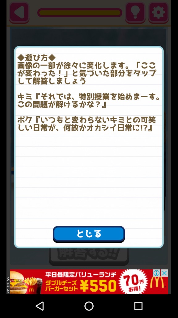 「JKと秘密のアハ体験!!ずっと続くボクたちの時間」は、頭の体操を目的としたアプリですので操作はシンプルです。