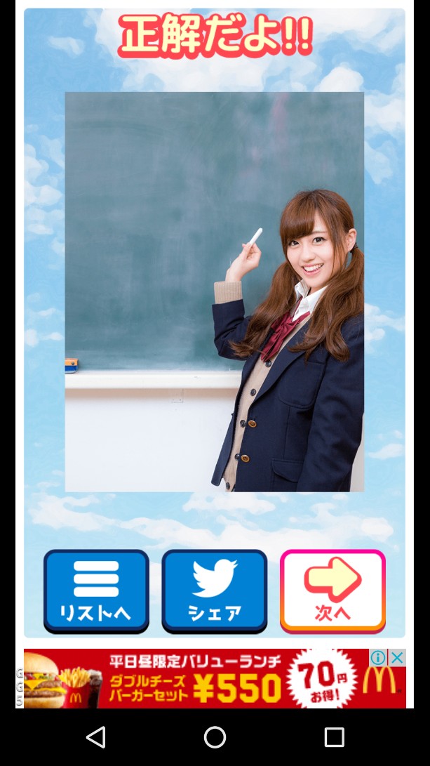 正解するとJKがにっこり笑ってくれますが、間違えてしまうとなんとも渋い顔でお出迎え。
