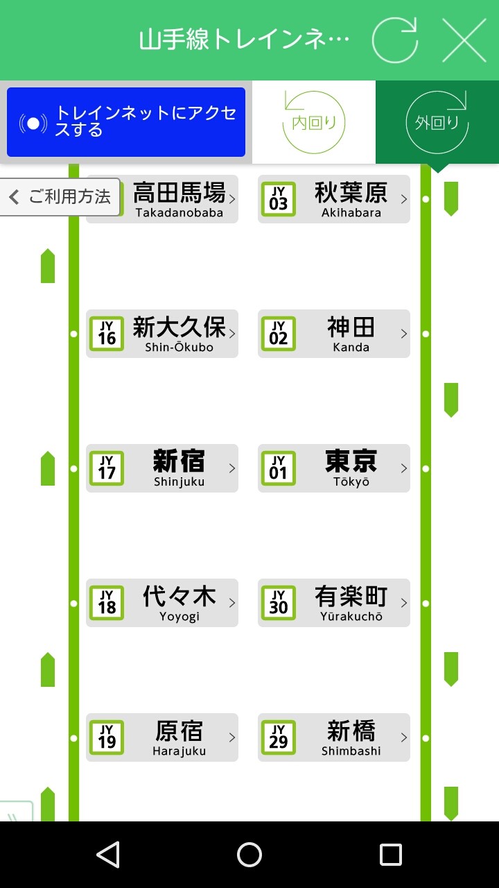 山手線に関しては「山手線トレインネット」として、お客様の乗車経路にあわせた駅情報(乗換路線、ホーム案内図、駅構内図)や、走行中の列車の車両別混雑状況、社内温度なども案内しています。