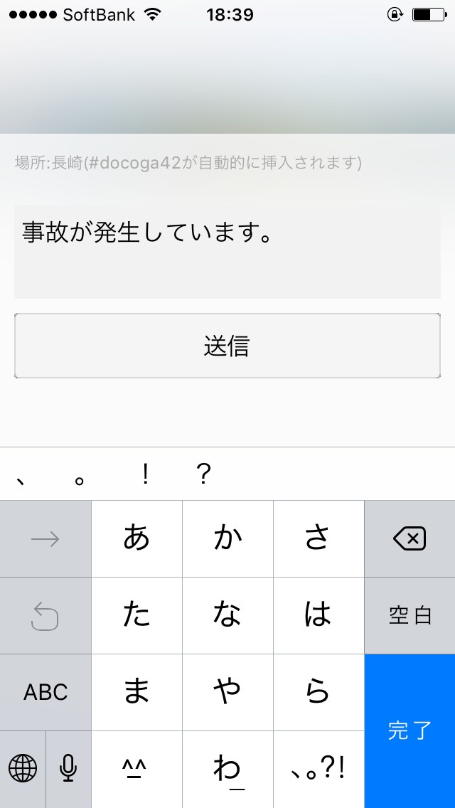 渋滞状況と書かれた場所をタップし、投稿を入力します。