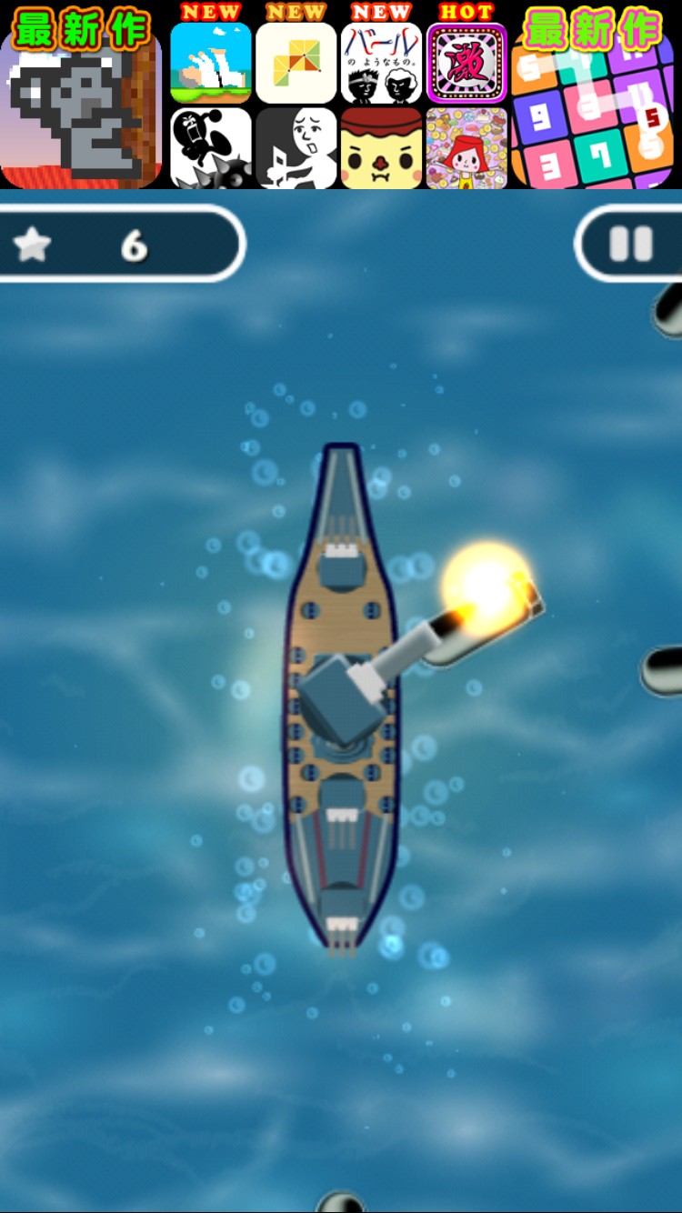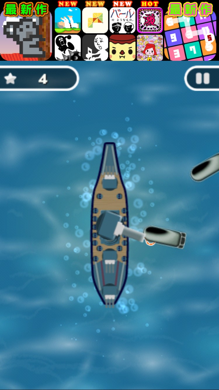 指の速さと集中力が問われるポイント競争ゲームです。ひたすらドラッグしては魚雷目がけて大砲を打つ!息も止まるほどに大量の魚雷をひらすら撃ち落とし続けよう!