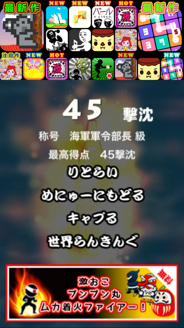 ちょっとストレス解消したいとき、暇な時間にサクッと遊べるゲームがほしい時、この無限戦艦大和魚雷爆破はぜひともお勧めのゲームです!