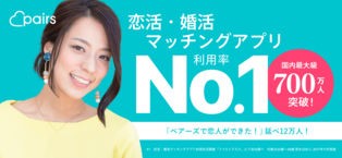 https://itunes.apple.com/jp/app/pairs-%E3%83%9A%E3%82%A2%E3%83%BC%E3%82%BA-%E6%81%8B%E6%B4%BB-%E5%A9%9A%E6%B4%BB%E3%83%9E%E3%83%83%E3%83%81%E3%83%B3%E3%82%B0%E3%82%A2%E3%83%97%E3%83%AA/id583376064