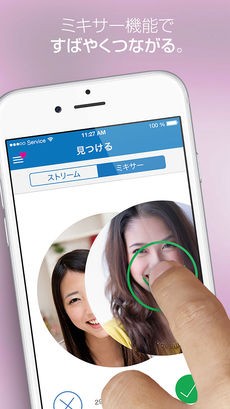 画面を左右にスワイプするだけで気になる相手にアプローチすることができるミキサー機能、近くにいるチャット可能な会員を写真で紹介するストリーム機能など、便利な機能も盛りだくさん。紹介した相手に対する興味を毎日回答するだけでマッチング精度がアップしていく学習機能がある点も魅力的です。