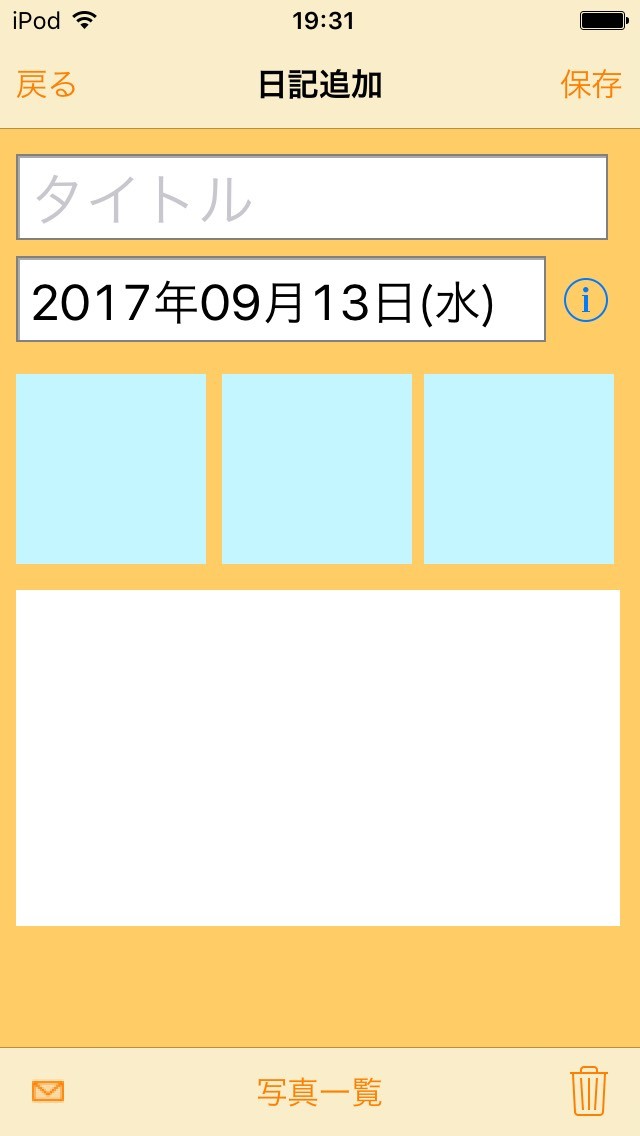 タイトルを入力し、日付をいれて…写真だって入れられますよ。