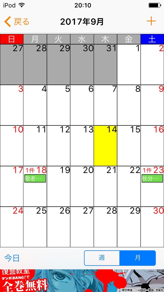 また月表示か週表示かも変えられます。週表示の場合は1週間の予定が拡大してみれるので一気に確認したいときはこちらの機能が役に立ちます。