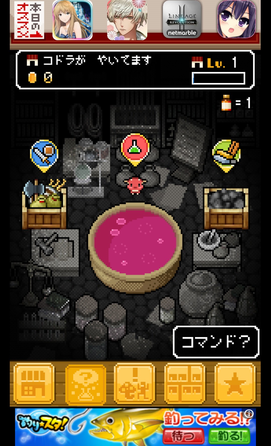 地元に戻ってお店のようなものを始めた勇者たち。コドラは店番をして勇者は外で素材集めと分業して経営を開始しましょう。