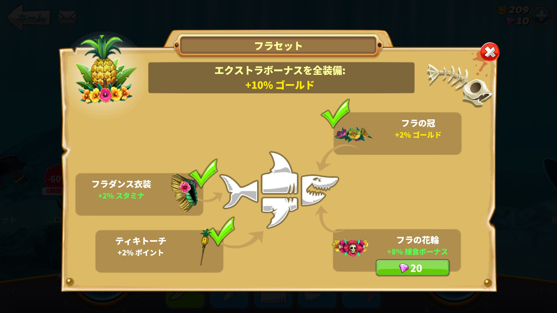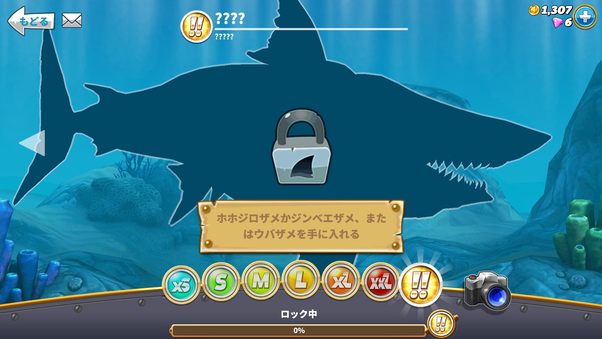 サメの解放にはゲームを何回もプレイすることで解放できますがその他にもジェムで購入する方法もあります。