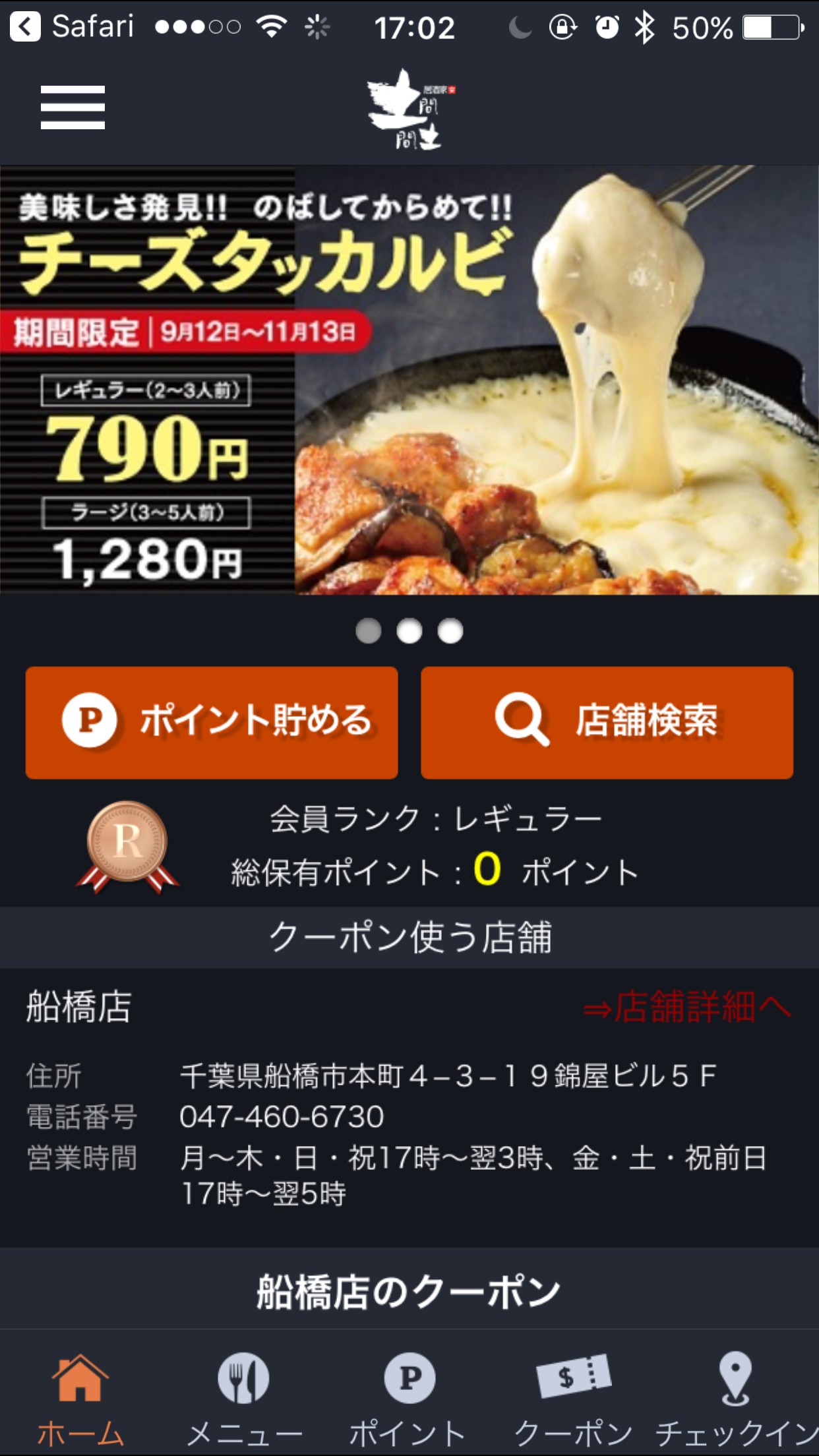 「クーポンを使う店舗」をよくいくお店に登録しておくと便利です。