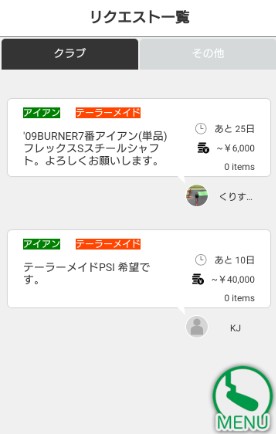 ゴルフ専用フリマアプリ「golfpot」では、ほしい商品のリクエストができます。