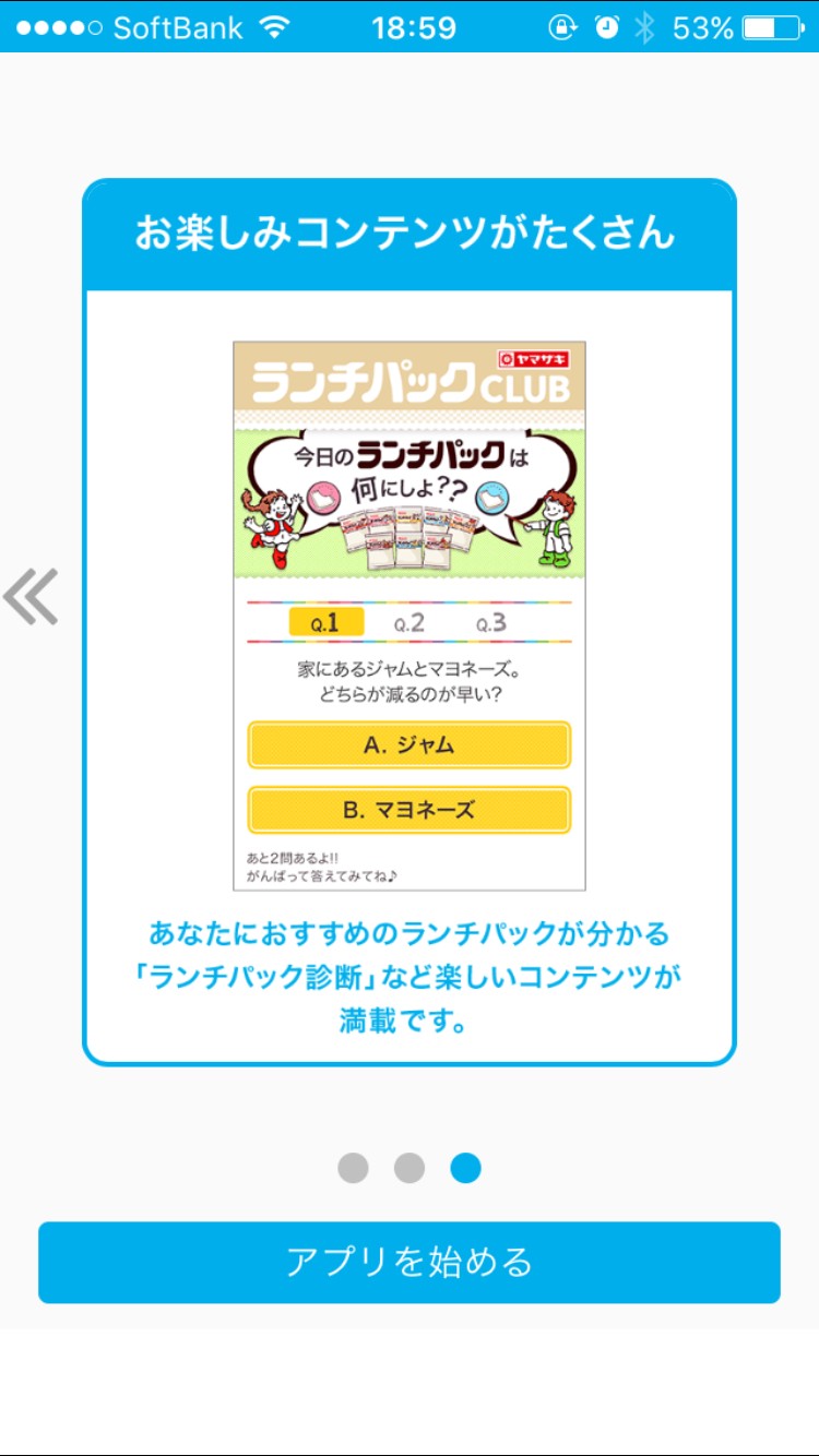アプリには、「ランチパック診断」というメニューがあります。2つの質問に答えていくという、とっても簡単な診断ですから、気軽に答えてみてくださいね。いくつかの質問に答えると、最終的に、オススメのランチパックを紹介してくれます。実際に食べてみるのも面白いですね。