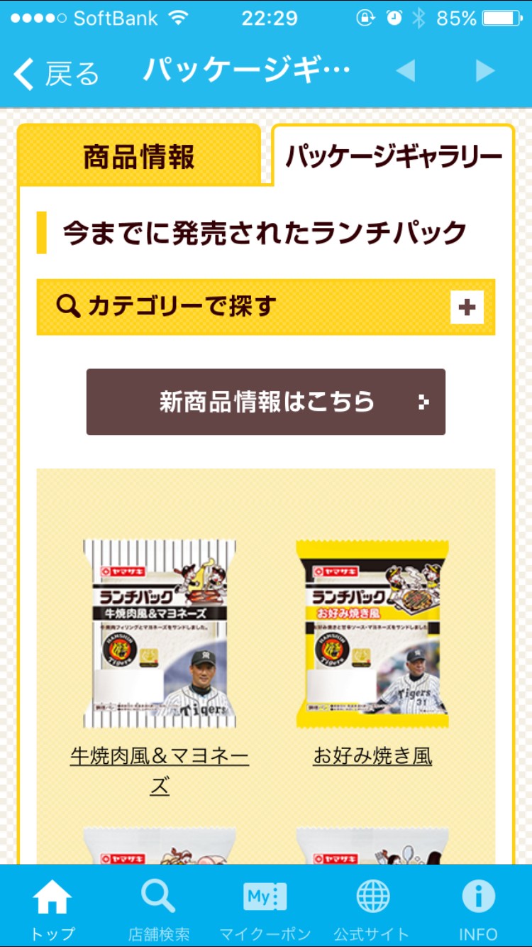 アプリの「パッケージギャラリー」では、過去に発売されたランチパックのパッケージを見ることができます。ランチパックは、今まで本当にたくさんの種類が販売されてきました。ご当地限定のもので、珍しいランチパックも見ることができますよ。また、現在発売中のランチパックの商品情報も知ることができます。