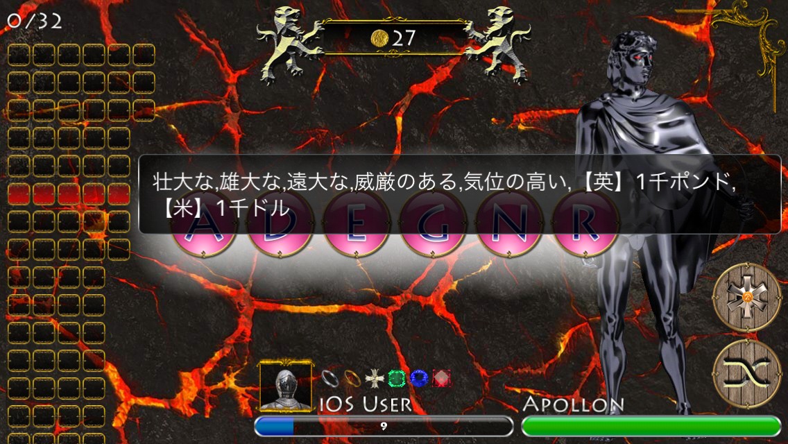 「英単語RPG ワード・オブ・ザ・リング」は、ゲーム画面上でアルファベットを組み合わせて、
