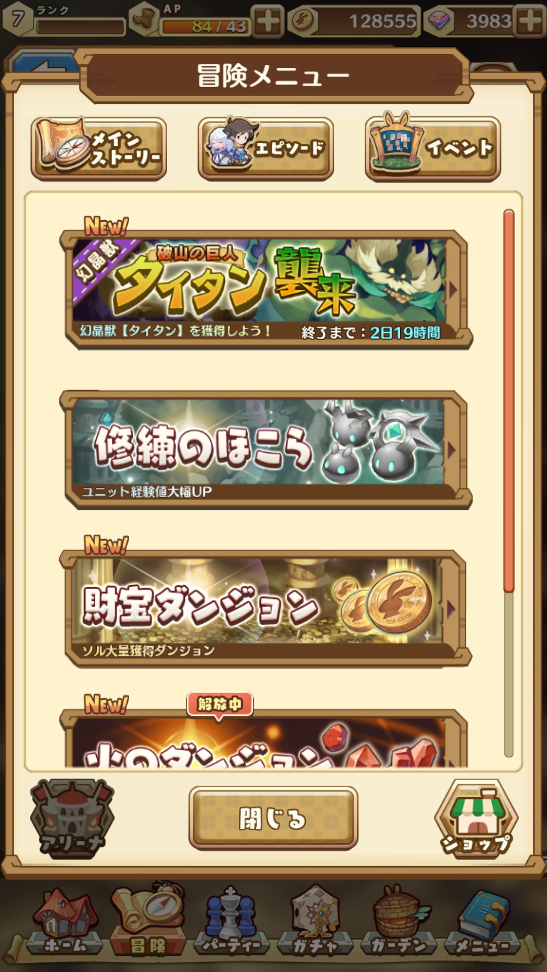 経験値やソル(ゲーム内通貨)スキルLvをアップの為のアイテムが手に入るダンジョンなどがある「イベント」