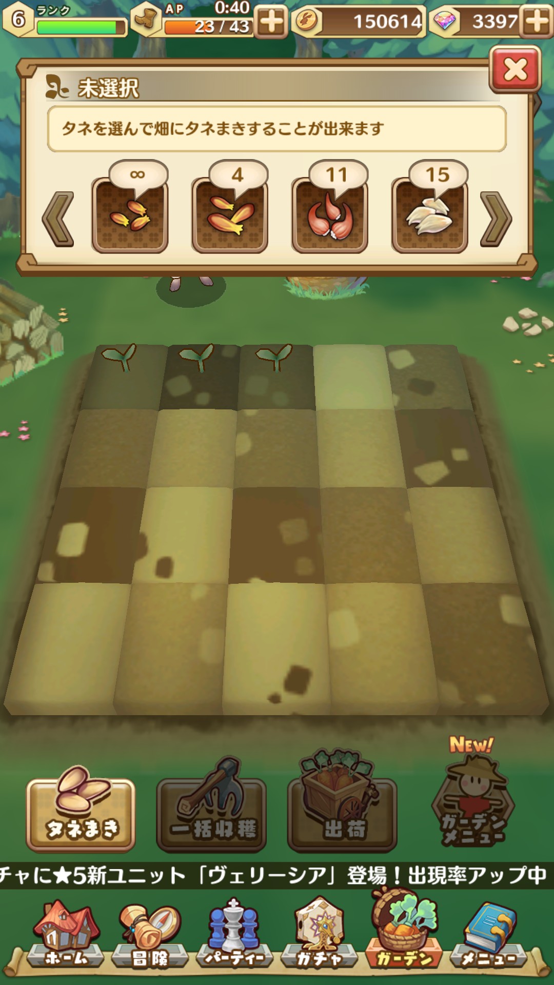 ガーデンメニューで手に入れた人参を見たりできます。