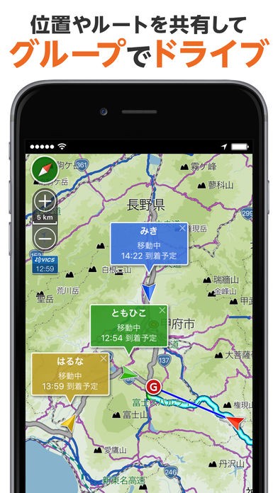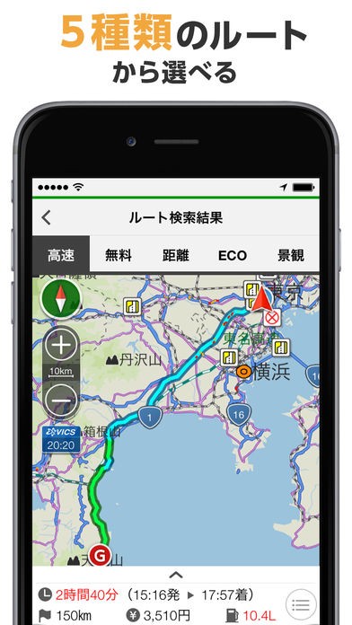 簡単に説明すれば「カーナビアプリ」です。グルメやレジャースポットはもちろん、SA/PA情報や駐車場、ガソリンスタンドなどスポット検索も大充実しているということで、定評があるカーナビアプリです。これには最新機能もついていて、VICS渋滞情報や交通状況を考慮しての最短ルート検索ができたり、交差点や分岐点では地図上に交通看板や進行レーンの3D表示が表示されるそうです。いわゆる「カーナビ」ほどの画面の大きさはスマホにはないので、見やすさはとても大事だと思います。そしてもちろん音楽や動画はスマホのほうが多いでしょうから、やはりスマホを使ってナビもしたいですよね。ここらへんを上手に考えて作ったなという感じがとてもしました。
