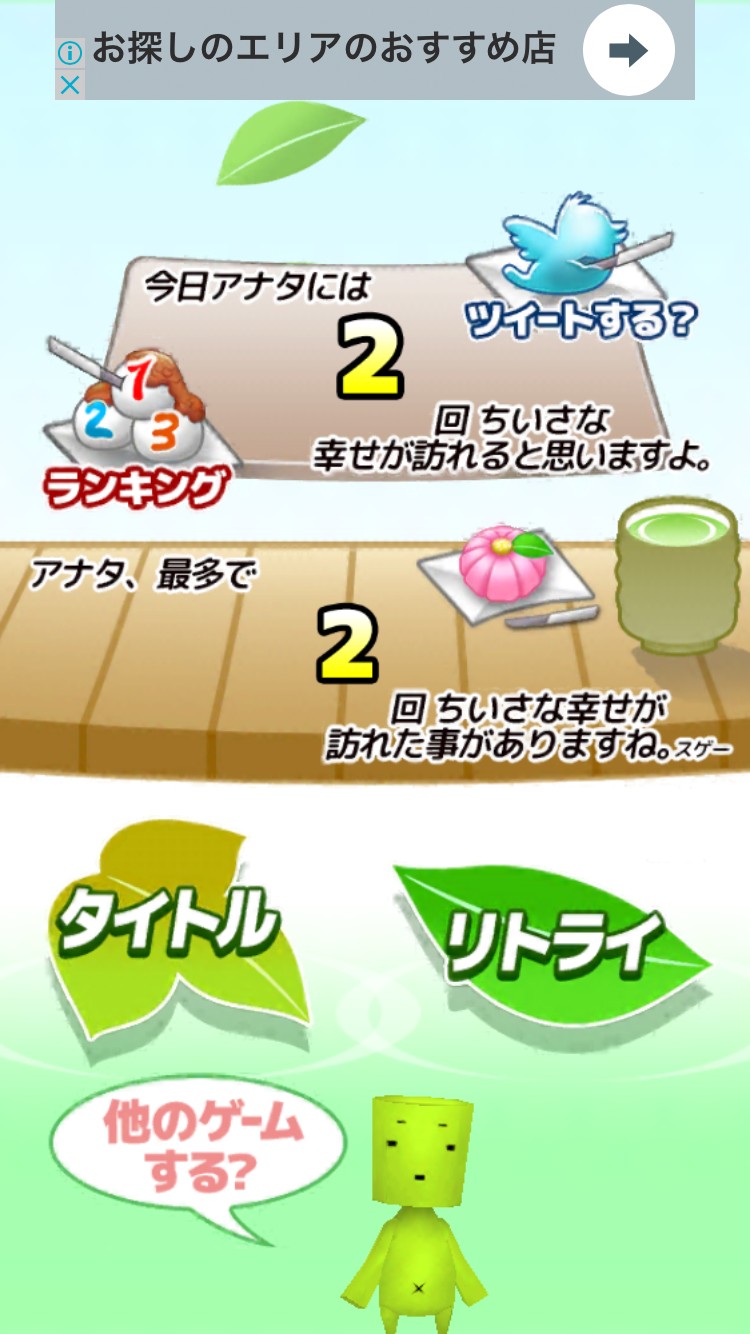 ゲーム終了時に「今日は〇個幸せなことがあるでしょう」とメッセージをくれるところも、励みになります。
