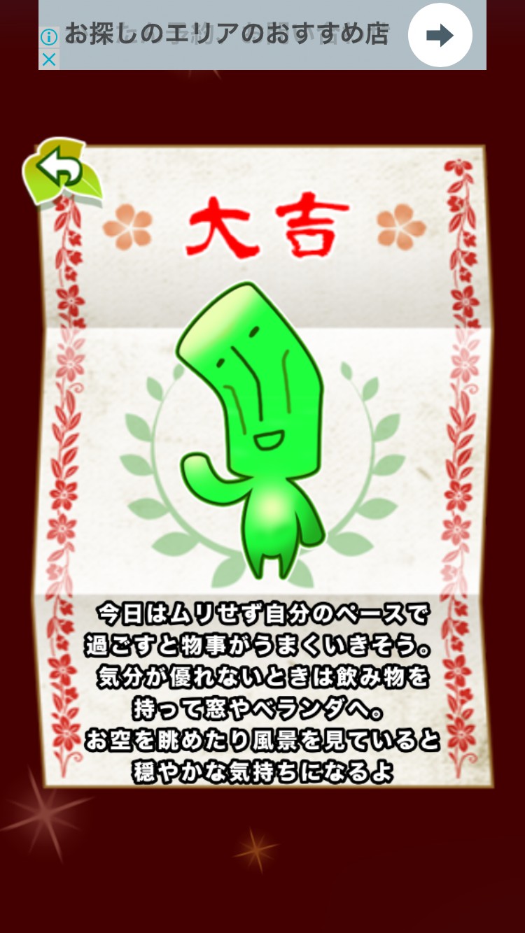 ちなみに大吉の時もまるで大吉っぽくない茶柱くんが出たりするので、それはそれで面白いです。