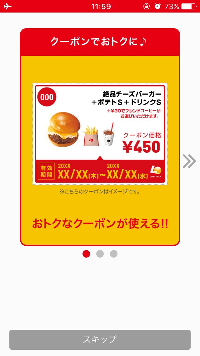 なんといっても提供される3種のクーポンがこの「ロッテリア公式アプリ」のおすすめポイントでしょう。