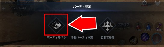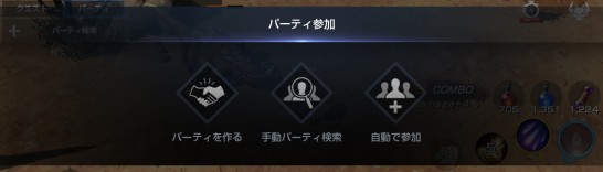 パーティを見つけるは「手動パーティー検索」と「自動で参加」の2パターンがあります。