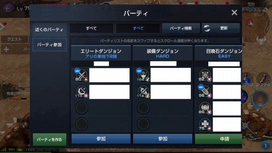 そこから自分の目的や実力に合ったパーティーを選ぶといいでしょう。