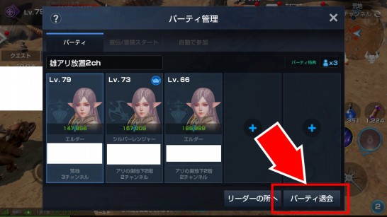 既に加入済みのパーティーから退出したい場合は、パーティー管理画面から「パーティー退会」を選びましょう。