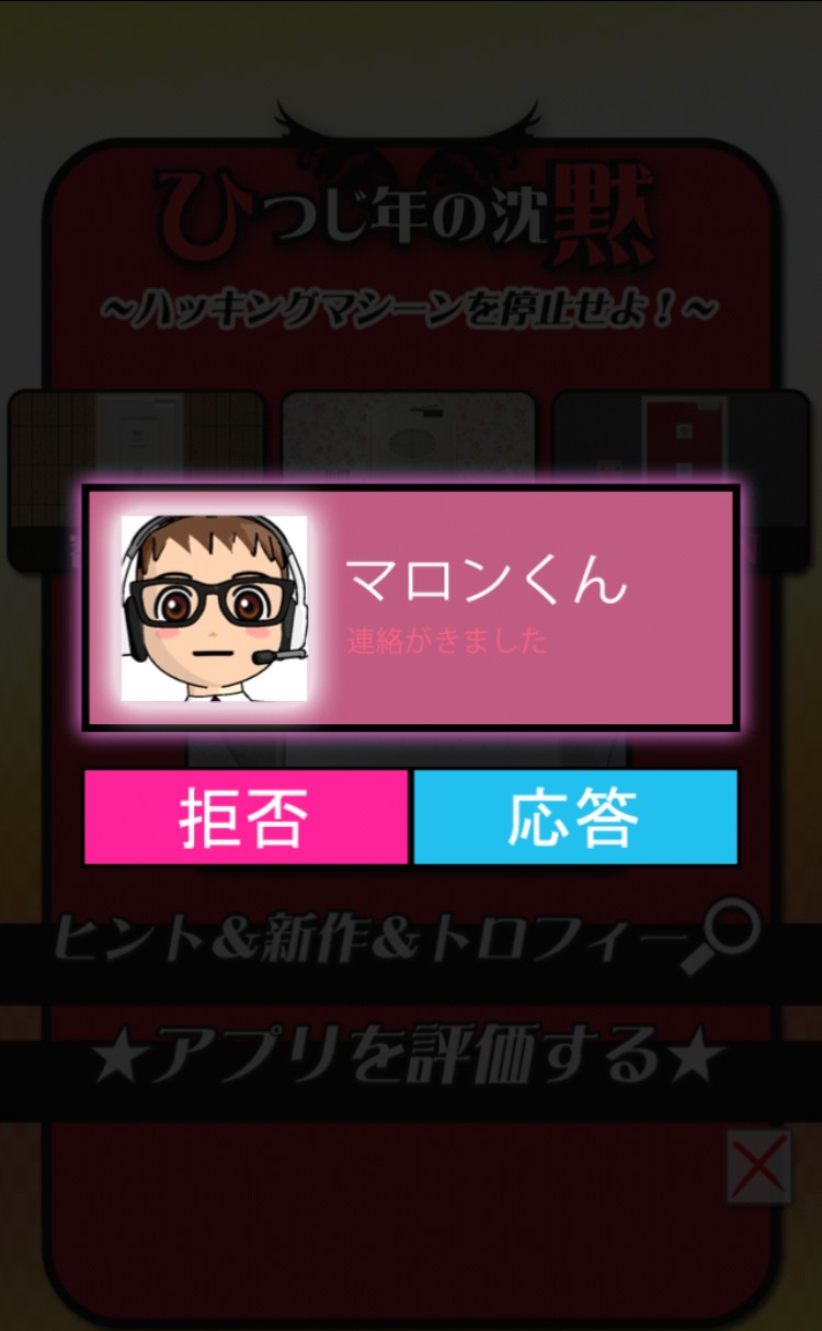 ストーリーの始めや、謎が解けていく要所要所では、脱出探偵のもとに電話が掛かってきます。「拒否」のボタンを押しても間髪入れずに掛かってくるため、無視することはできません。この電話のパートがストーリーパートであり、脱出探偵と依頼主のマロンくんの会話を楽しむことができます。脱出探偵は、マロンくんからの電話に「はい、天才のわたしです」と答えるなどとてもコミカルなキャラ!マロンくんとの会話も軽快で肩の力が抜けるため、謎解きでゴチャゴチャになった頭をリフレッシュする良い機会です。画面に出てくる電話の表示にはリアル感があり、このアプリの世界観により一層入り込める演出となっています。