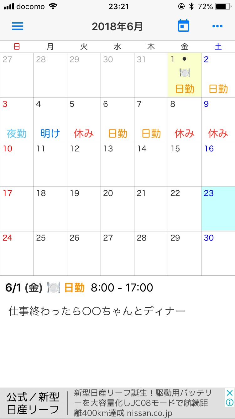 - 日ごとにメモが入力できて、仕事の予定と一緒にプライベートの予定管理もできる