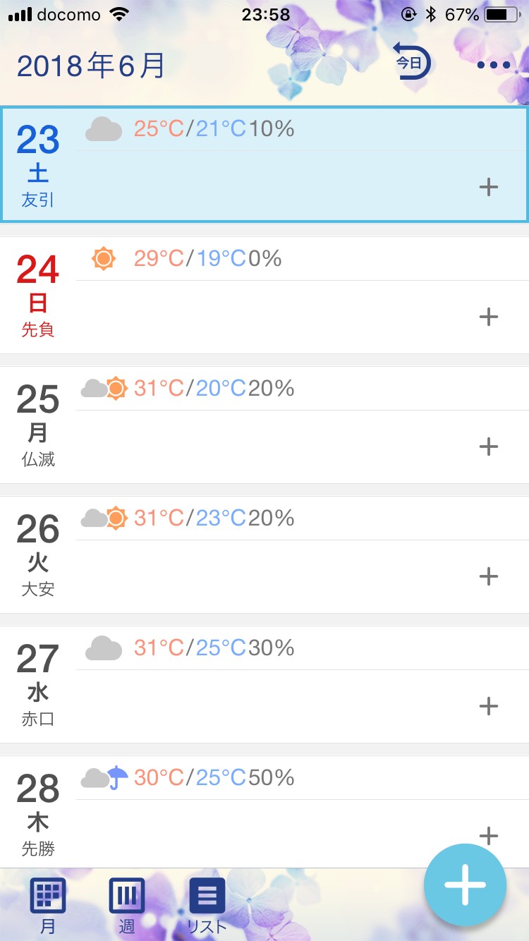 カレンダー上で1週間の天気が確認できるため、予定が立てやすくなります。