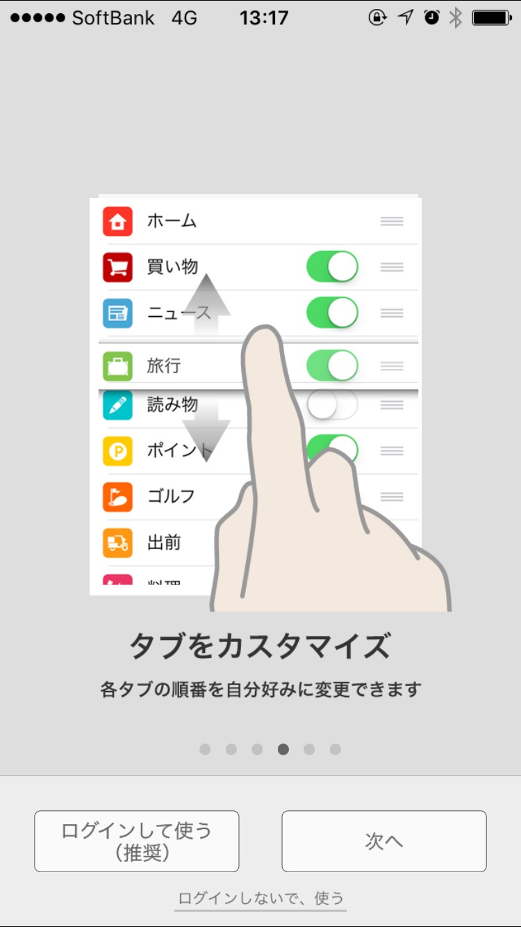 また、「トレンド情報がつまった公式無料ポータルアプリ:楽天gateway」は、アプリ内の設定から、簡単にタブの並び替えをすることが出来ます。設定画面から、「タブの並び替え」を選択し、右端の三本線を長押しすることでタブを移動させて動かすことが出来ます。また、三本線の隣のボタンをオン・オフに切り替えることで、不要なタブを外すことが出来ます。自分のチェックしたい情報を選んで、見やすい内容にカスタマイズして、もっと便利に楽しくアプリを使いましょう!