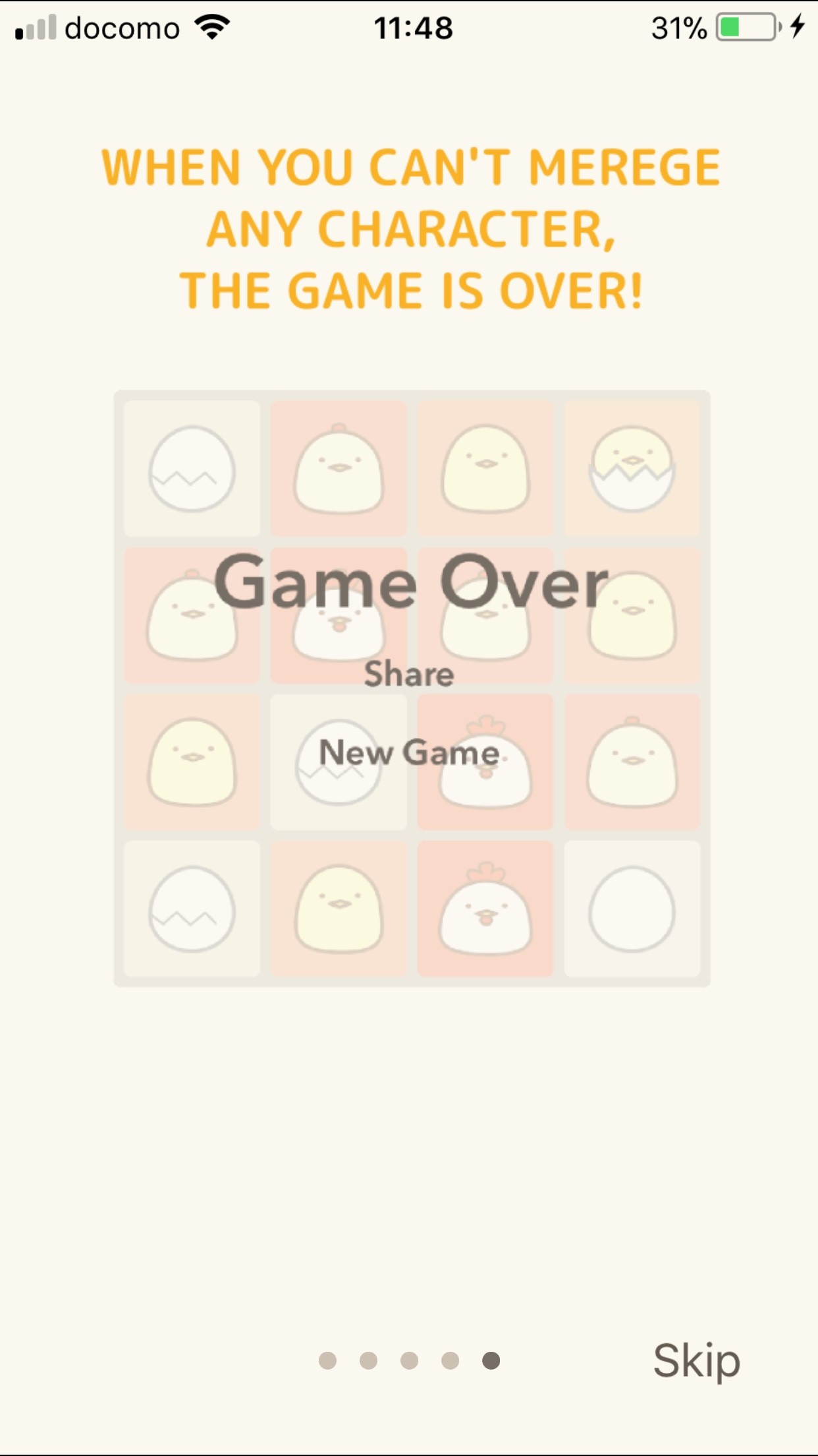 このゲームは、最初はひなで生まれてきたとりたまを育てていくのですが、同じとりたまがくっつくと大きくなっていきますので、どんどん大きくしていってみよう。