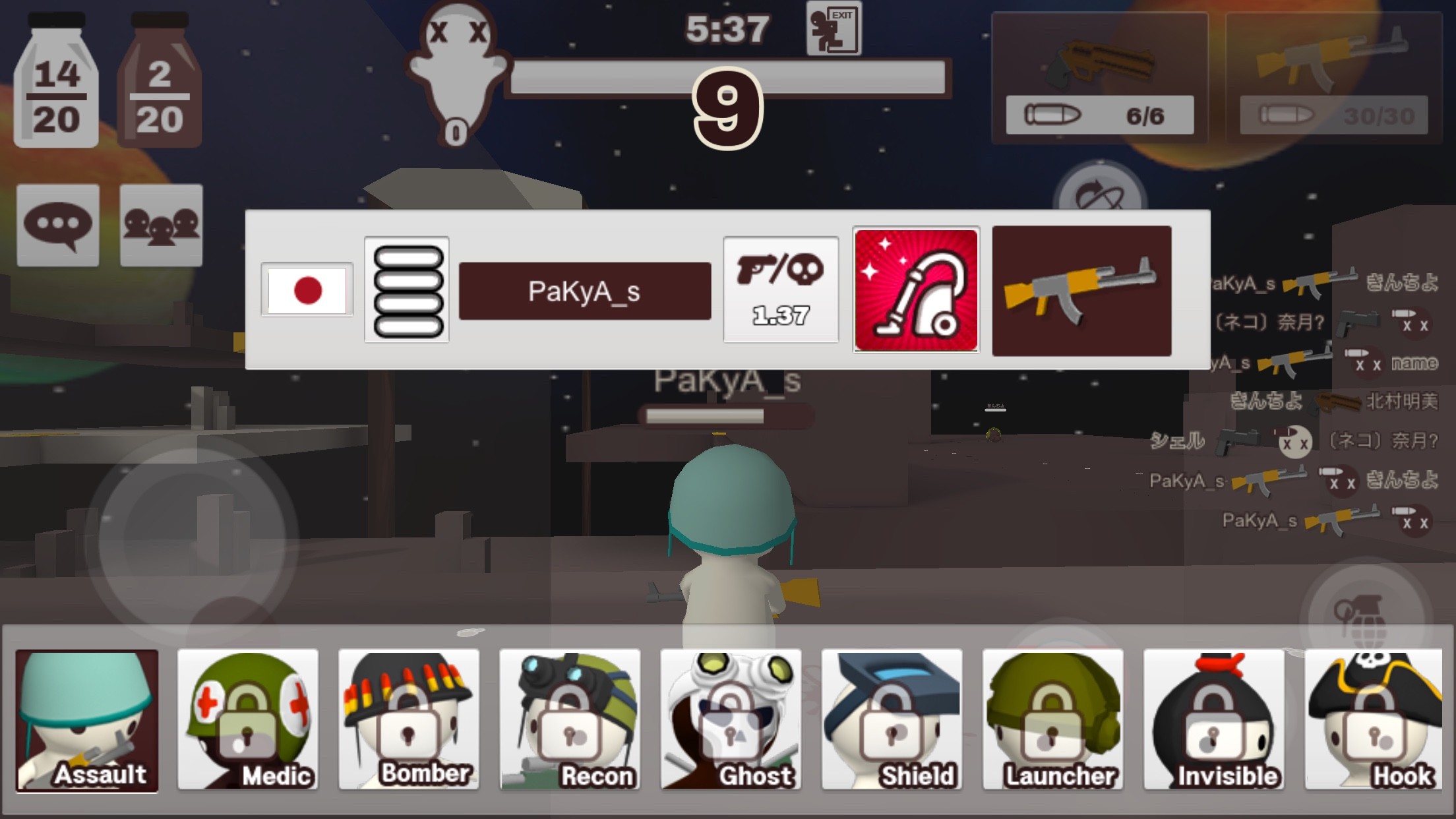 このゲームはチームプレーが一番の要素で、共に協力しあって相手のチームを倒します。