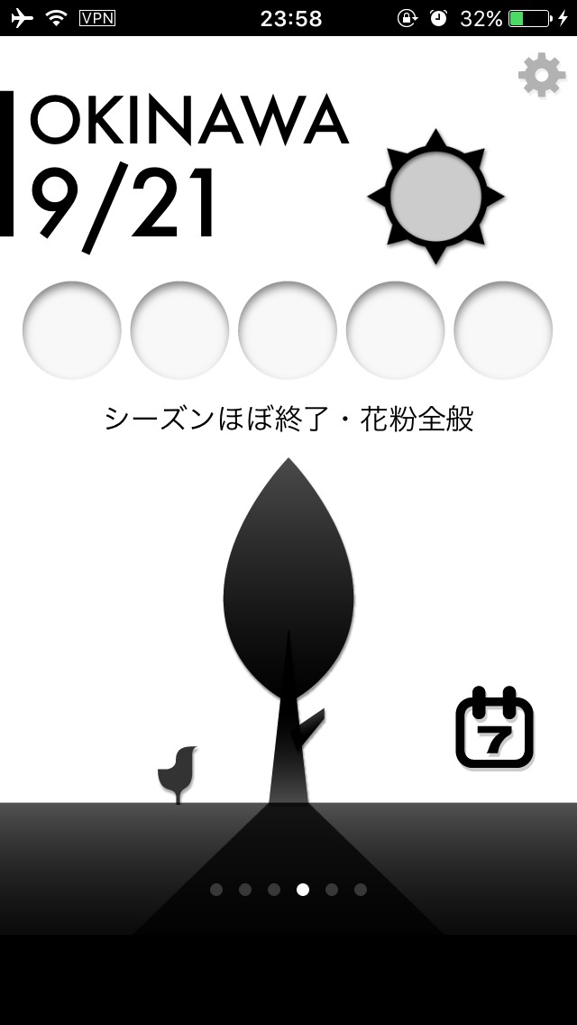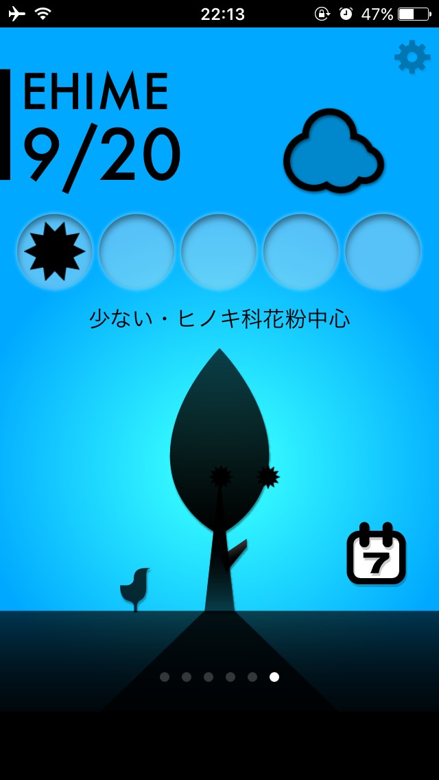 この「花粉チェッカー」アプリの右下の部分には7と書かれた日めくりカレンダーのようなボタンがあります。