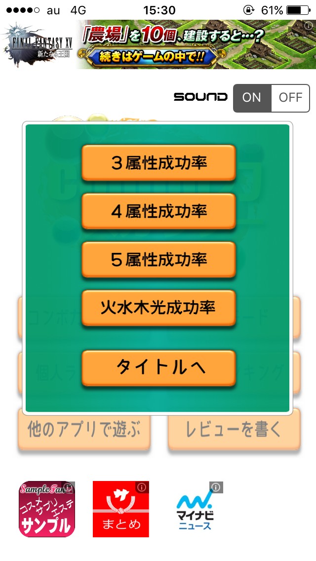 もちろん、成功率も表示されますので、あなた好みの属性が思う存分に練習でき、パズルドロップを消すスキルの向上を図れます!