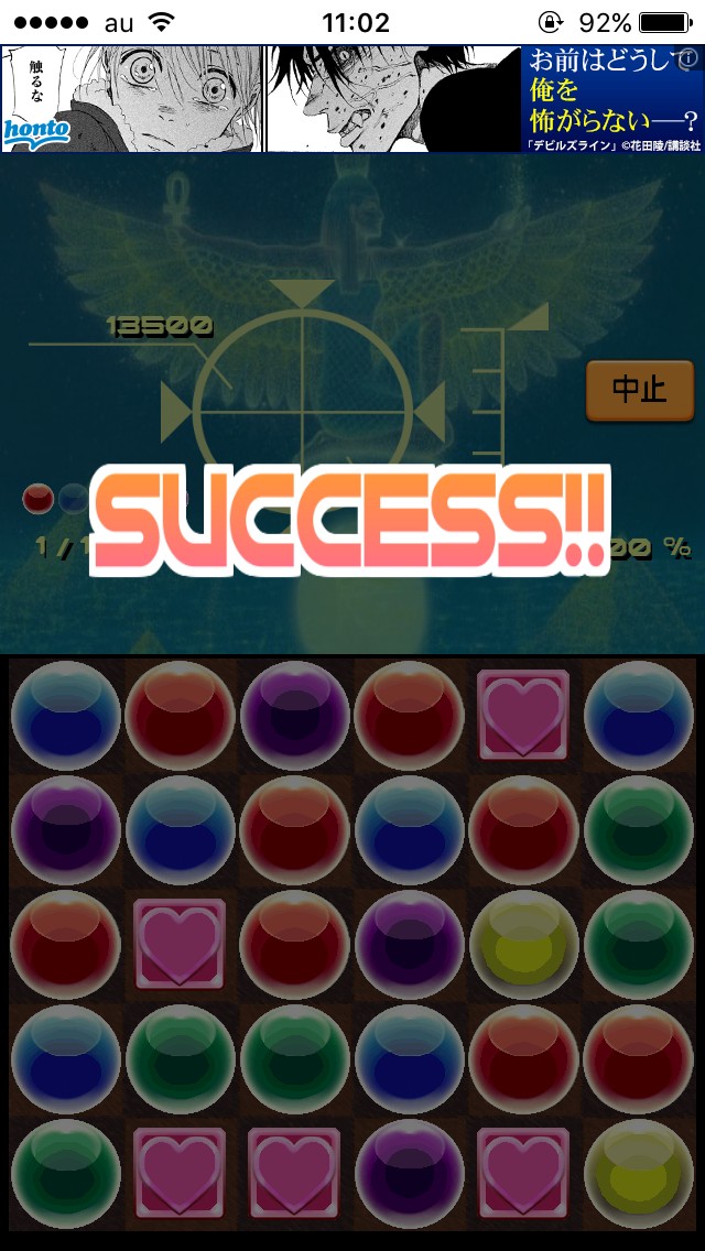 上の写真は三種類のドロップを消した時のものです。このように、成功したら「success」と表示してくれるので、属性を考慮した練習が手軽にできます。