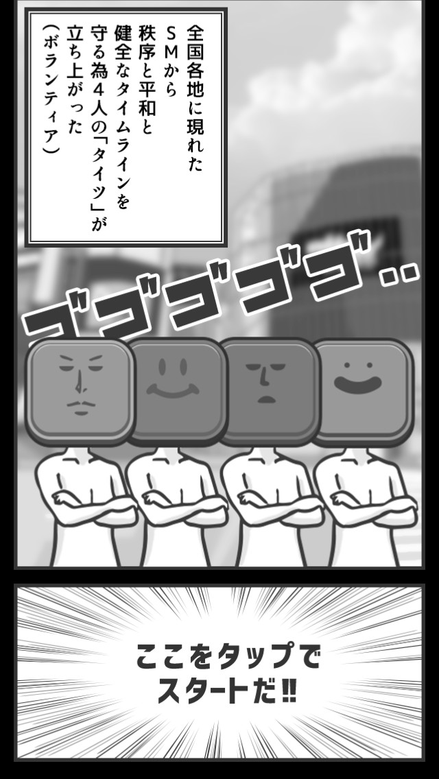 主人公は4人のタイツたち(ボランティア)というなんともシュールな設定です。全国各地に現れたソーシャルモンスターから秩序と平和と健全なタイムラインを守るために戦います。